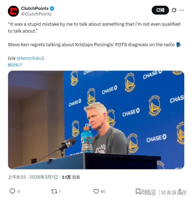 实际上,库里的伤病尚属可预见范畴,勇士队更为担忧的是新援波尔津吉斯的情况。在昨日勇士与快船的比赛中,波尔津吉斯再度缺席。主帅科尔解释道:“波尔津吉斯的病情颇为复杂,队医正努力查明其具体病情。”此前有传闻称,波尔津吉斯所患的“疑难杂症”可能与体位性心动过速综合征(POTS)有关,该病症在他效力于凯尔特人队时已被查出,属于自主神经功能障碍性疾病。